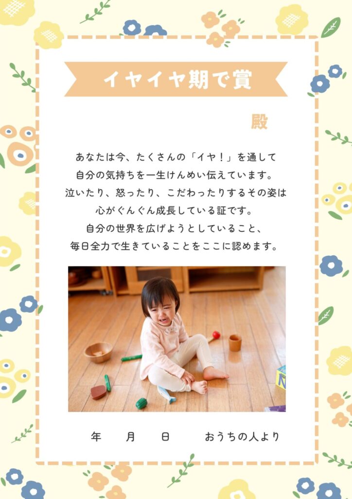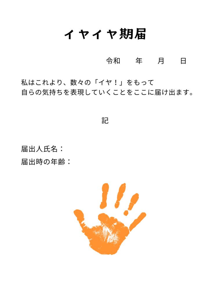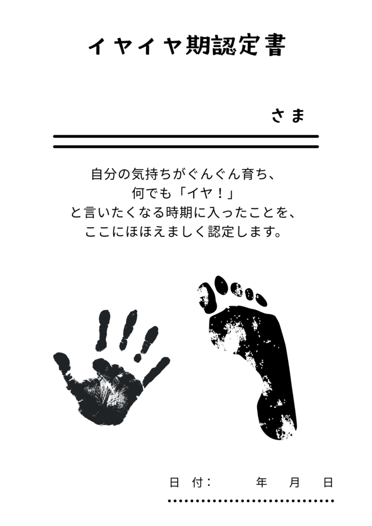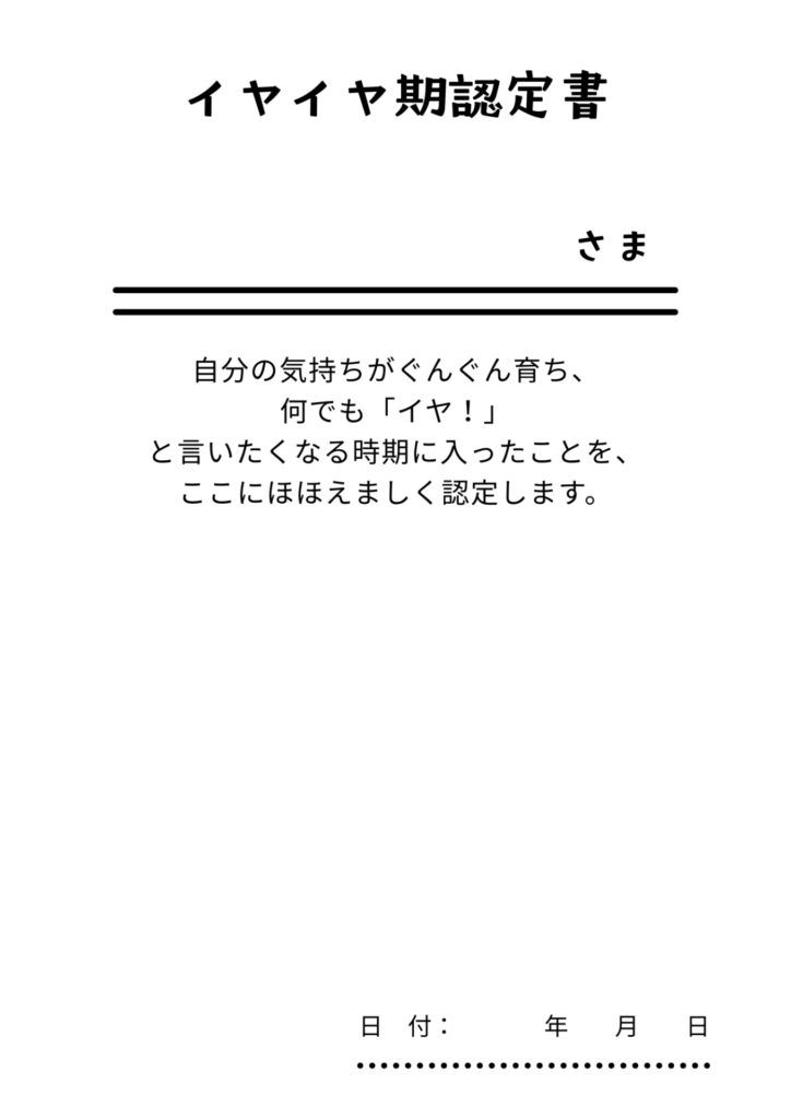 イヤイヤ期認定書