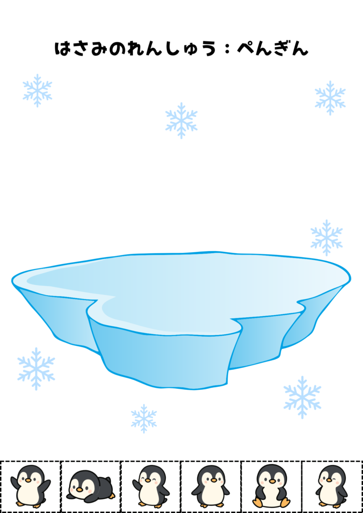 はさみのれんしゅう用プリント素材:氷とペンギン